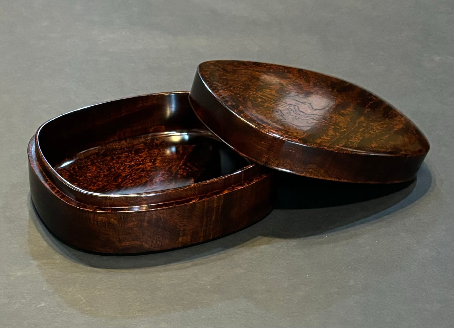 稀に見る美しい黒柿の縦木取材にて制作。 刳物技法による自由な形態と杢目の魅力。 仕上げは漆を十数回丁寧に塗り研ぎを繰り返し、仕上げられた逸品です。 ■サイズ: 横7.3㎝、奥行6.0㎝、高2.4㎝、天然漆仕上げ ☆お手入れ/取り扱い注意事項 使用後は水または中性洗剤で軽く手洗いし、やわらかい布で丁寧に拭き上げることをおすすめします。 食器洗浄機や電子レンジでの使用は避け、直射日光が当たらない場所で保管してください。 ■発送・注文に関する情報や注意事項 ご注文後、通常5営業日以内に発送いたしますが、ご注文が集中した場合には発送が遅れることもありますので、ご了承ください。 お問い合せはショップのお問い合わせページよりお気軽にご連絡ください。お客様のご要望にお応えできるよう、心を込めて対応いたします。