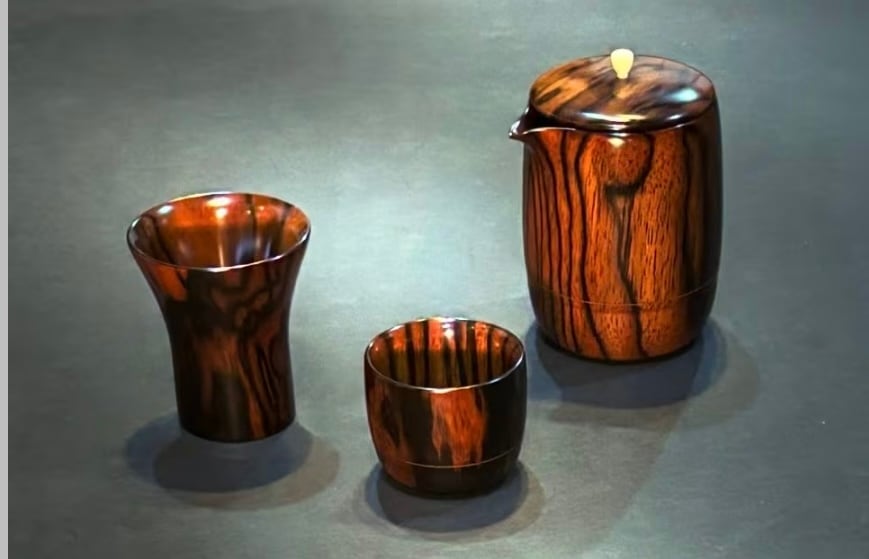 ☆黒柿の酒器で特別なひとときを☆ 黒柿の中でも特に美しい貴重な素材を使用し、その魅力を最大限に生かした存在感のある形を目指し制作しました。 その形状は高台が特徴で、持ちやすさや唇までの近さを考慮し、実用性と美しさの調和を実現しました。 拭漆仕上げにより、黒柿の導管を完全に塞ぐことで、口当たりの良さと高い強度を確保しています。 十数回にわたり漆を塗り重ね、研ぎ上げたことで、黒柿の質感とともに、口当たりの心地よさをお楽しみ下さい。 ■サイズ:径6.0㎝、 高さ7cm、天然漆仕上げ ☆お手入れ/取り扱い注意事項 使用後は水または中性洗剤で軽く手洗いし、やわらかい布で拭き上げることをおすすめします。 食器洗浄機や電子レンジでの使用は避け、直射日光が当たらない場所での保管をお願いいたします。 ■発送・注文に関する情報や注意事項 ご注文後、通常3営業日以内に発送いたしますが、ご注文が集中した場合には発送が遅れることもありますので、ご了承ください。 お問い合せはショップのお問い合わせページよりお気軽にご連絡ください。お客様のご要望にお応えできるよう、心を込めて対応いたします。