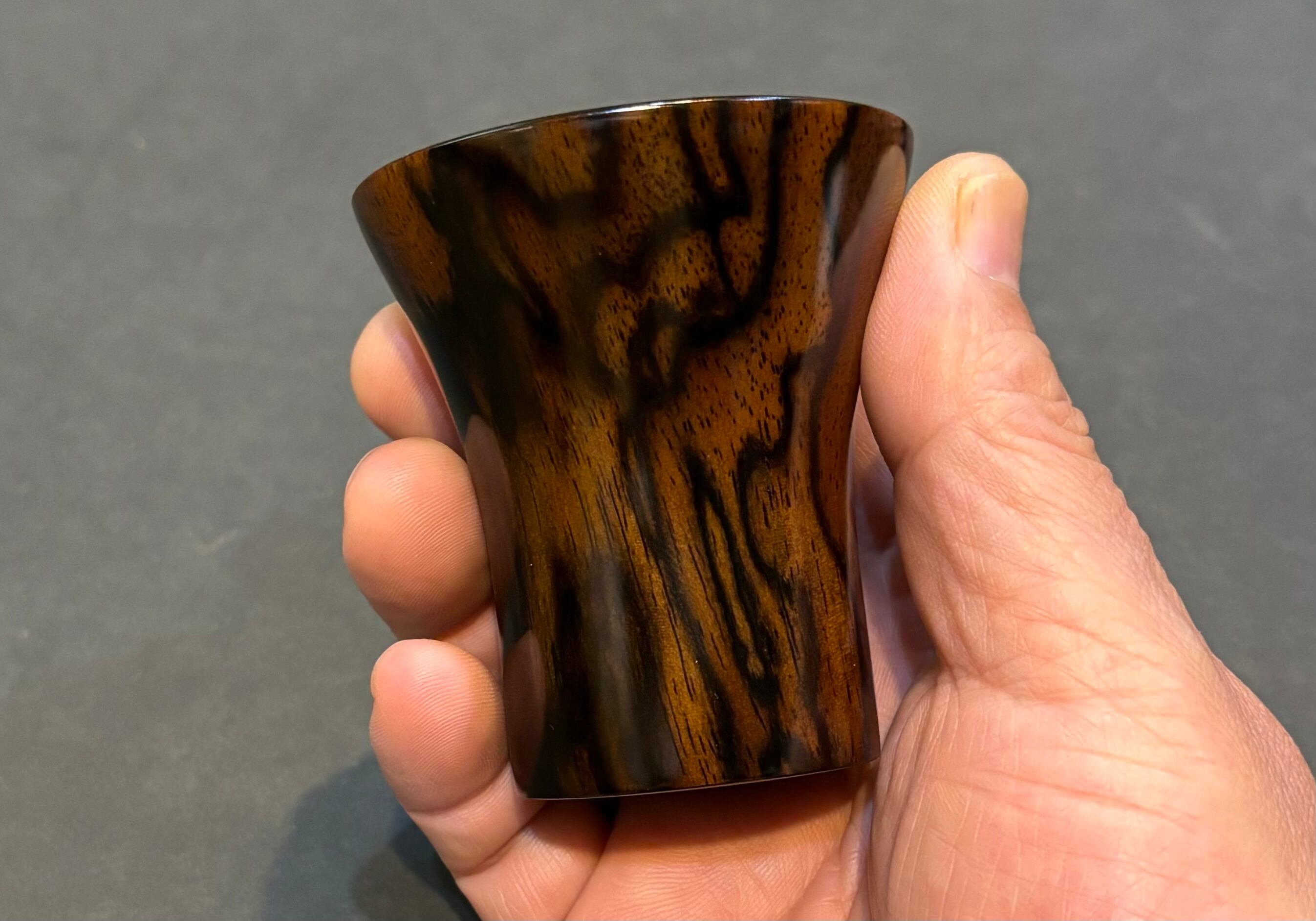 十数回漆を塗り研ぎを繰り返す事で、黒柿の美しさと手触り、口当たりの良さを感じて頂けましたら幸いです。