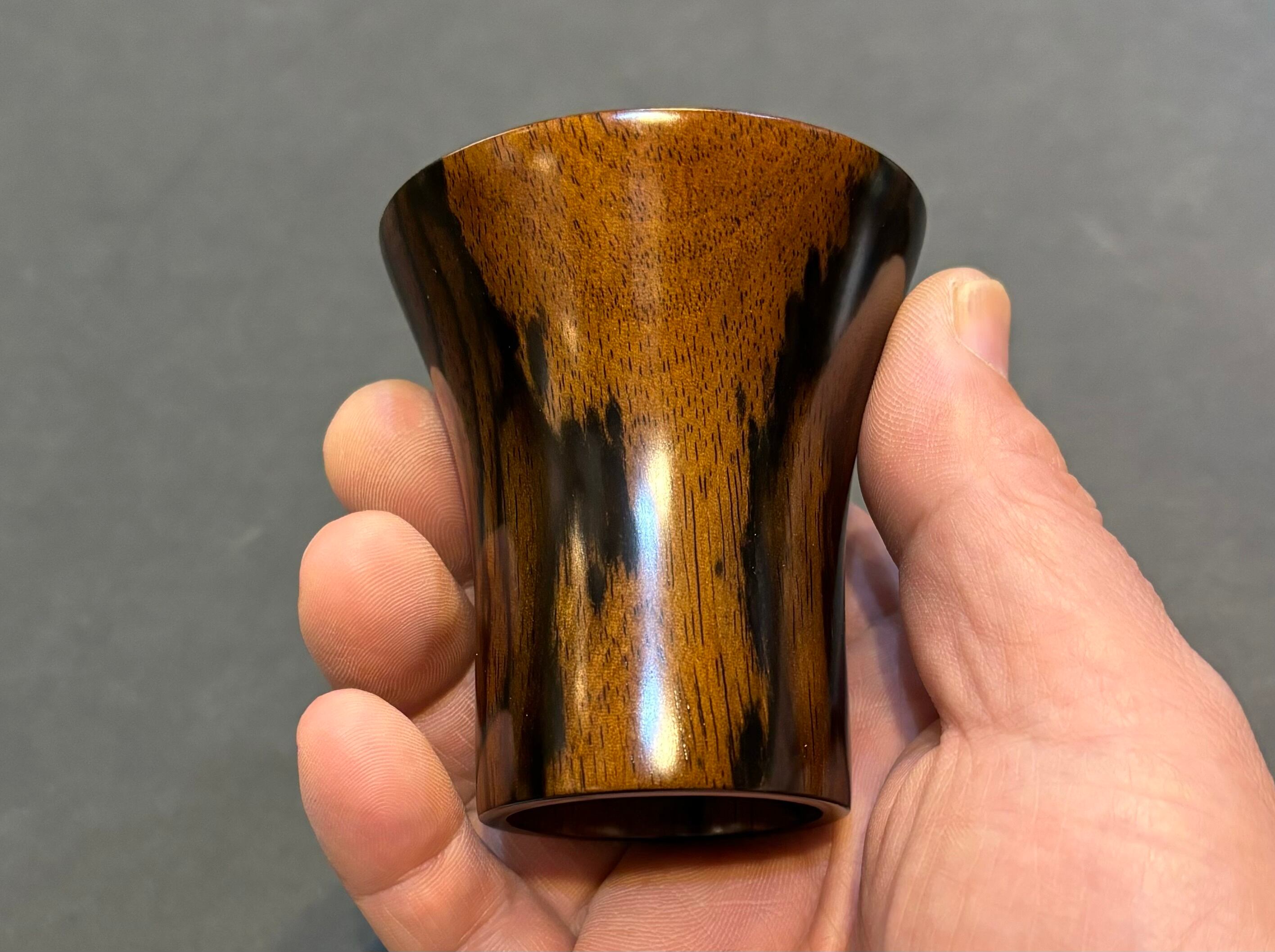 十数回漆を塗り研ぎを繰り返す事で、黒柿の美しさと手触り、口当たりの良さを感じて頂けましたら幸いです。