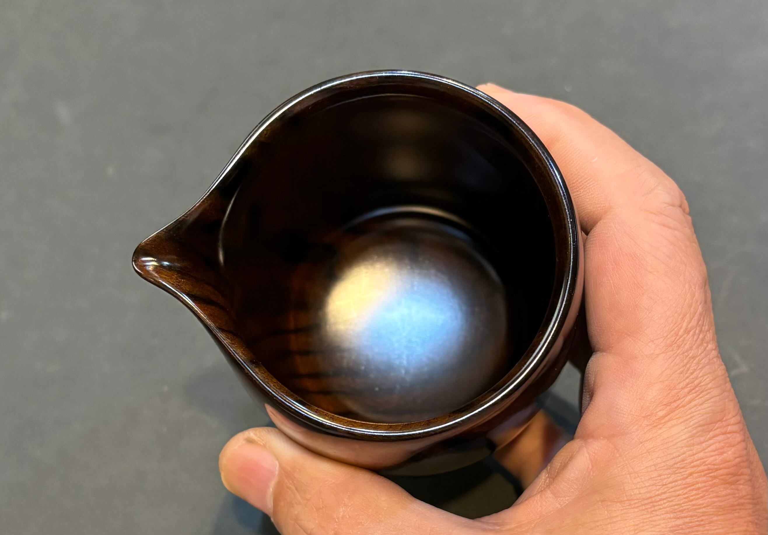 ふっくらとした形態にお酒を注ぐ嘴、お酒を注ぐ時あと引きしない様に丁寧に削り出しました。